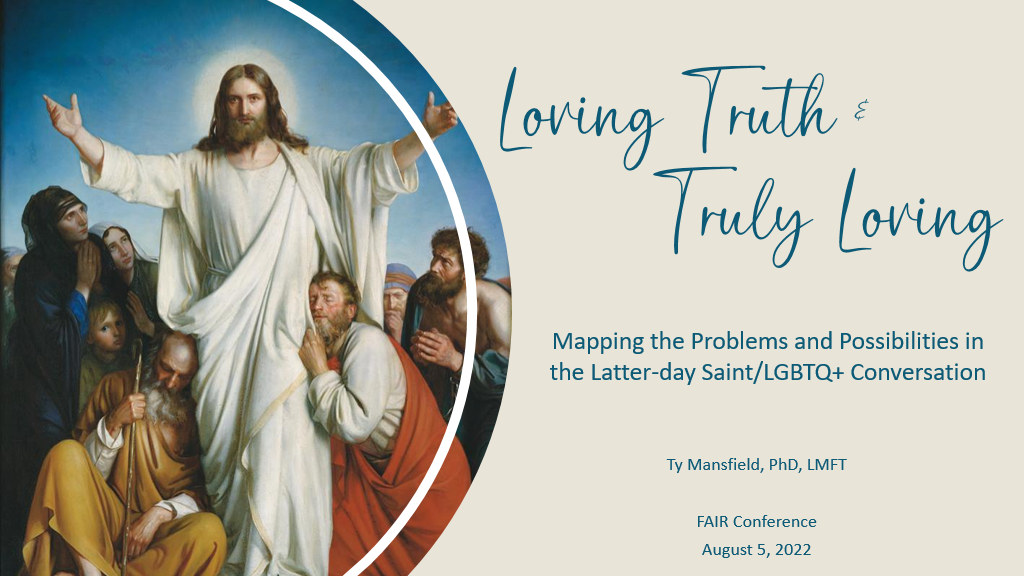 The title of this presentation is “Loving Truth and Truly Loving: Mapping the Problems and Possibilities in the Latter-day Saint LGBTQ+ Conversation.” To give you a brief background, I spoke at the fair conference in 2014.