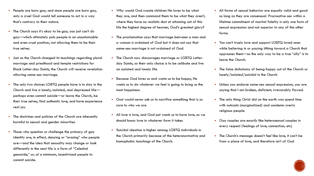 So, in our efforts to love, include, and minister to sexual and gender minorities, are we resourcing the restored doctrine and gospel of Jesus Christ, or are we resourcing queer liberation ideologies or other culturally informed resources with assumptions and values that are either wrong or antithetical to the gospel and doctrines of Jesus Christ?