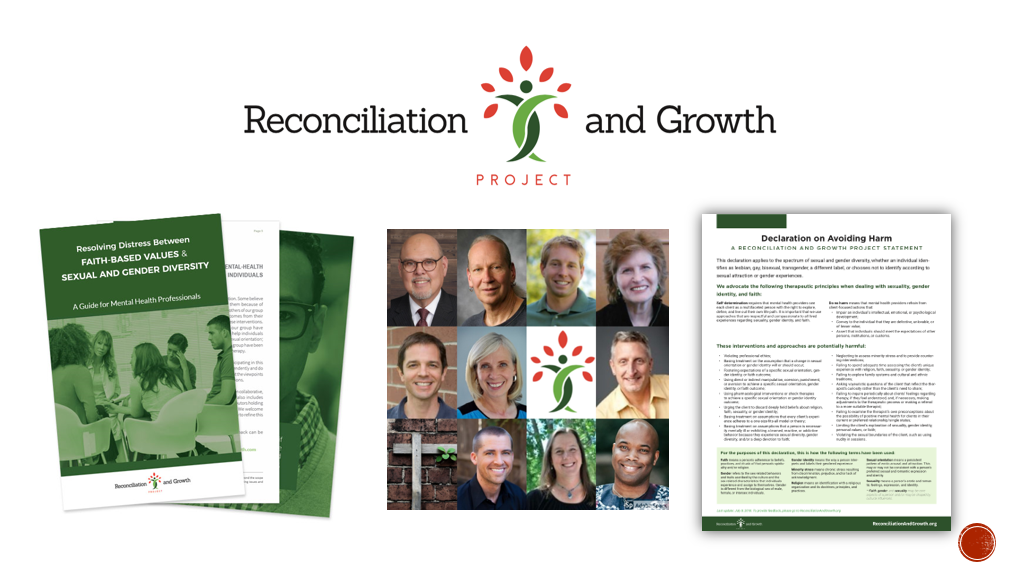 For the last eight years, I’ve been involved in the Reconciliation and Growth Project, a group of mental health professionals from various ideologies discussing good therapy for people navigating difficult questions. Out of this, we created a guide called the Declaration on Avoiding Harm, identifying real harms in therapy. Where do we all agree the real harms are because progressive therapists can do harm, conservative therapists can do harm. And from there, a research project grew where we were looking at four different life paths for sexual minorities within the LDS Church: single celibate, single sexually active, opposite sex relationships and same-sex relationships.