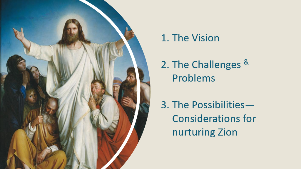 I’m breaking up my thoughts today into three general sections: the vision, the challenges and problems, and the possibilities. What are some things we can consider as we move closer to Zion?