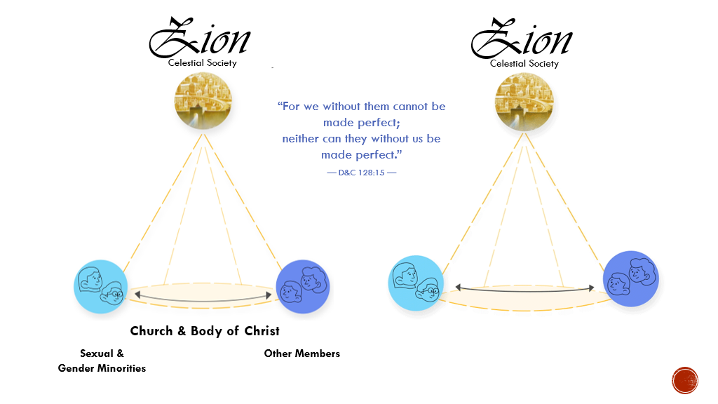As a Church in a covenant relationship with each other, we cannot be made perfect without them, nor can they without us. I need you, and you need me, in order to be made perfect. As we listen to each other and discuss what it means to create Zion in a way that respects each of our life experiences, we’re all doing our best. But this becomes challenging when cultural dynamics make talking about sexuality in our culture very problematic.