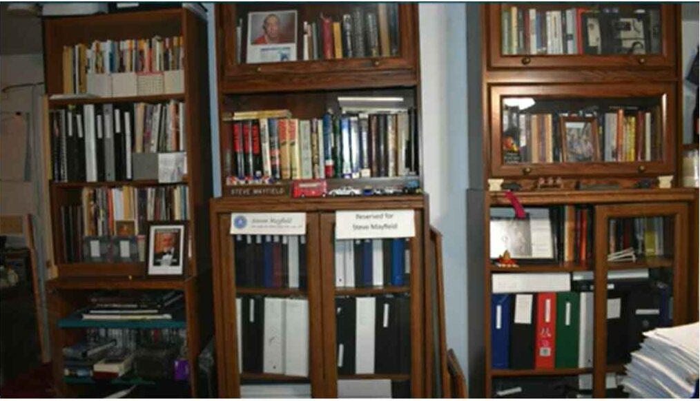 Steve’s Hofmann collection, I might add that Steve has a huge collection overall and a good portion of it is now at Brigham Young University and the rest will go there eventually. But his Hofmann collection alone includes three bookcases as you can see, 30 to 40 binders, and 25 boxes of material.