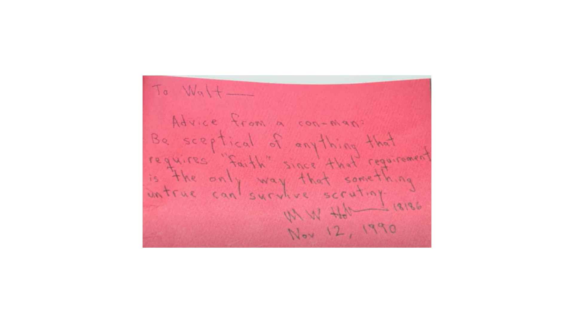 So George came in and worked with the people in the Church archives and they determined that the signatures were traced. You put the paper down and you kind of write over it. But the big coup de grace on it was it was taken back to New York to a gentleman named Peter Teitel who in the forensic business is the typewriter guy. Now this was 1924 when it was supposedly dated, but he determined it was a 1950 Royal typewriter that was used to type this letter. So they’re still out there.