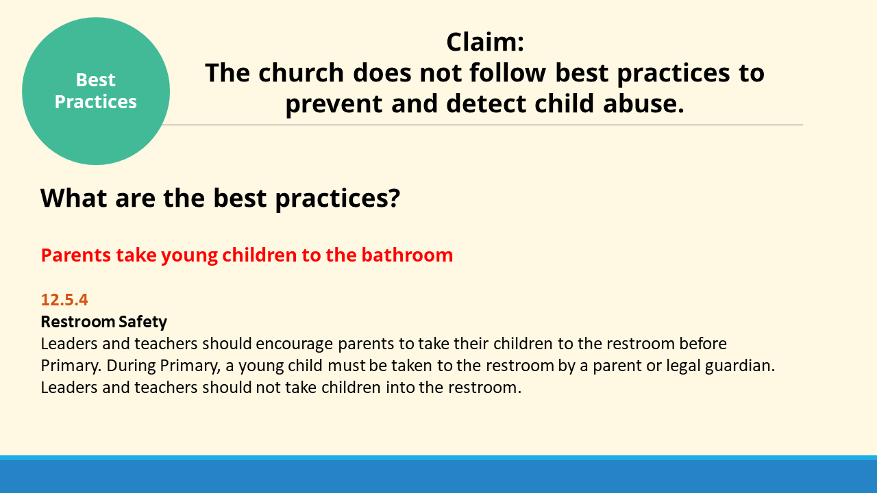 So, the claim, “If the church really wanted to keep kids safe from abuse, they would require background checks.” Here’s my evidence. We must do a better job educating people that “he has a clean background check” is identical to “we didn’t find anything on his record,” because it’s going to clue parents in differently about their responsibility of still watching over their own children.