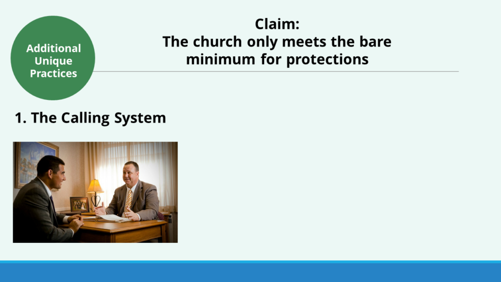 Some of these, you might laugh — and I’m okay with that — because you will not recognize them as protections that our church has for children, but they are.  Number one is the calling system.