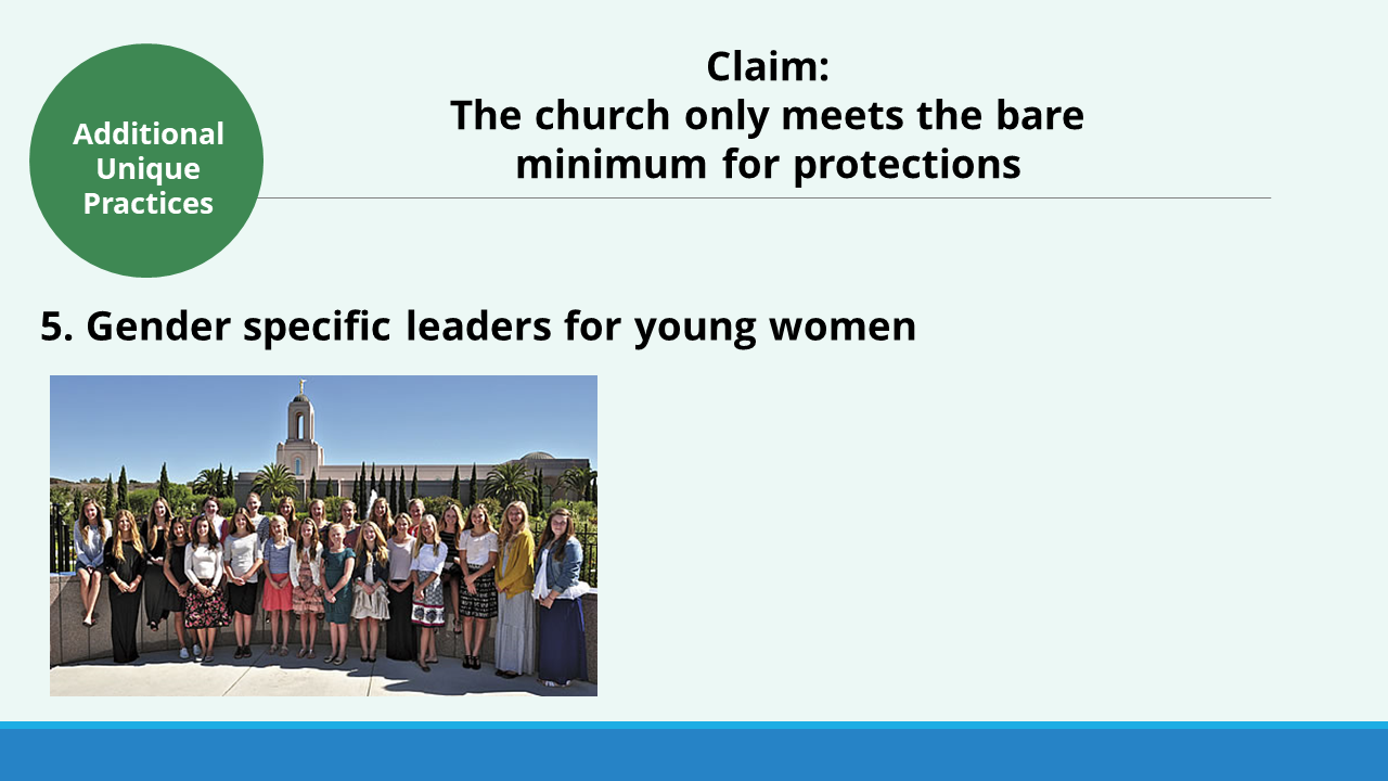 Yeah, reference back to my 2020 FAIR talk, it is all about Bishop interviews. Honestly, I did not include this in this talk, just because I covered it so much back then. There are very, very few places where teenagers get to say something in private to an adult who might know what to do. If I would have had a bishop interview when I was 16 years old, my life would have turned out really different. A bishop interview is an opportunity for a kid to disclose. I mean, I know the claim — the claim is that even asking teenagers about chastity — that in and of itself is abuse. It’s not. That’s not abuse, but it does give you a chance to listen to what a kid has to say. And maybe ferret out if something weird is going on.