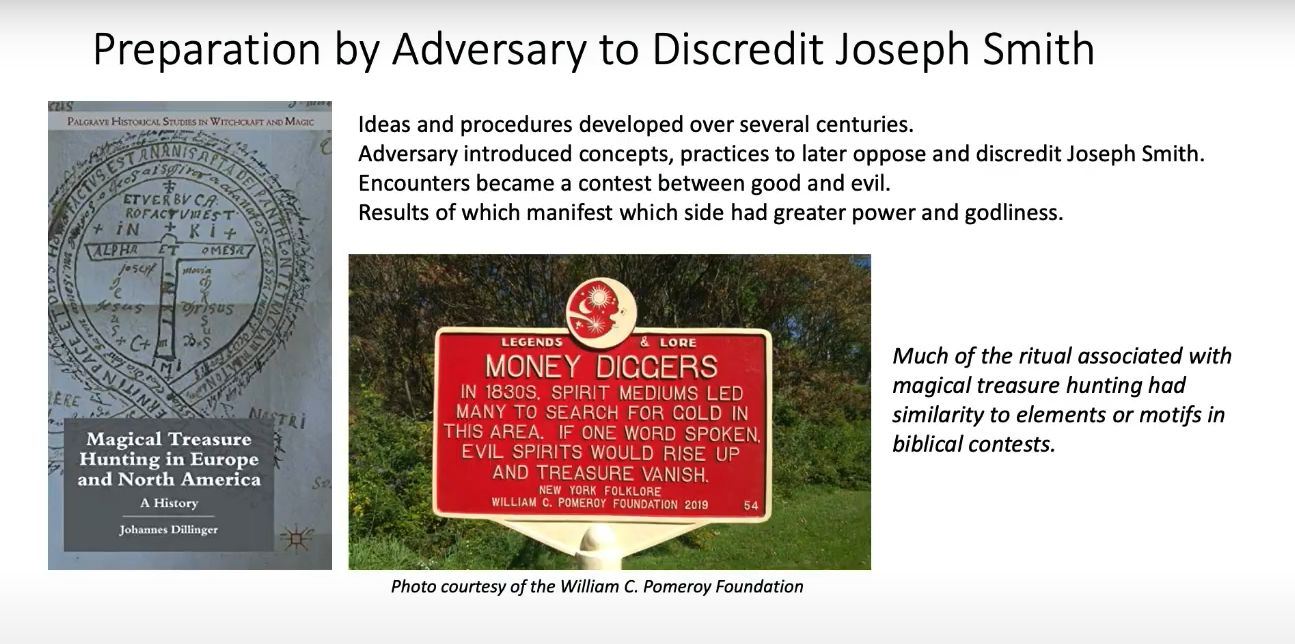 An exceptional study of the origins and background of that activity is provided by historian Johannes Dillinger in his book Magical Treasure Hunting in Europe and North America: A History.[9] He traces development of these ideas and procedures over several centuries. This would afford the Adversary opportunity to introduce concepts or practices designed to later oppose and discredit Joseph Smith.