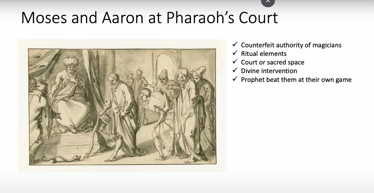 ● Moses and Aaron with the magicians of Pharaoh’s court.
