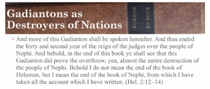 Undergirding the Nephite story from the book of Helaman to battle at Cumorah was Mormon’s thematic parallel between the Jaredites and the Gadiantons. Both Jaredites and Gadiantons had secret combinations. For both the Jaredites and the Gadiantons, their secret combinations worked to destroy a previously covenant people. Mormon made that thematic parallel explicit in Helaman 2:12–14: