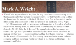 In Bountiful, the people knew that a living God had descended. They needed to know that this living being had once died. Marks in the hands and feet would not show them that. The killing wound in the side would. This God had descended to them in glory. But in another location had descended and died as a mortal. Just as Nephite prophets had declared.[4] The descent of their God clearly fulfilled both the prophecy that Yahweh would come down as well as that Yahweh would be Jesus the Messiah who provided the atoning sacrifice. After 3 Nephi, there was no more need for Mormon to show that Jesus is the Christ. Mormon no longer entered sermons or discussions of Jesus the Messiah.