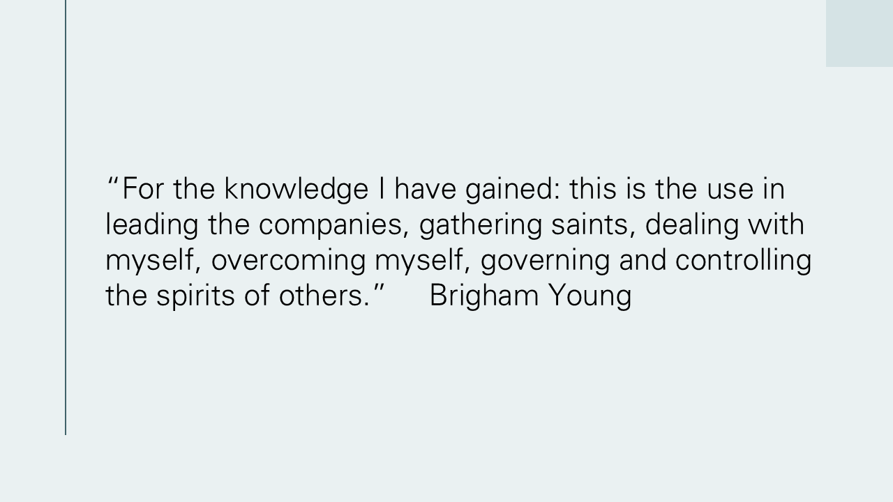 Brigham Young sought to learn and follow the mind and will of the Lord, as he told the Salt Lake City School of the Prophets in May 1868: