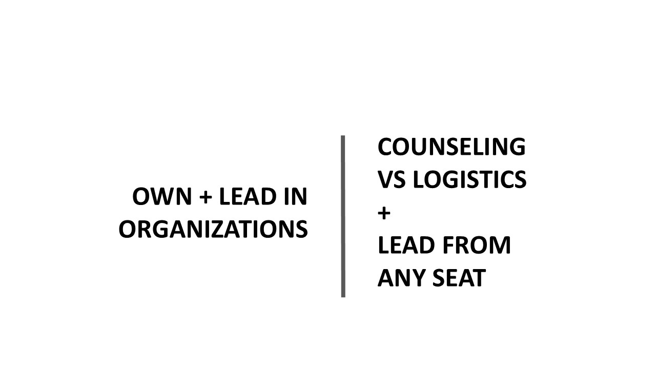 Owning and leading in organizations—recognizing that there are counseling conversations, there are logistical conversations—and helping own and lead from any seat, no matter what those conversations are happening.