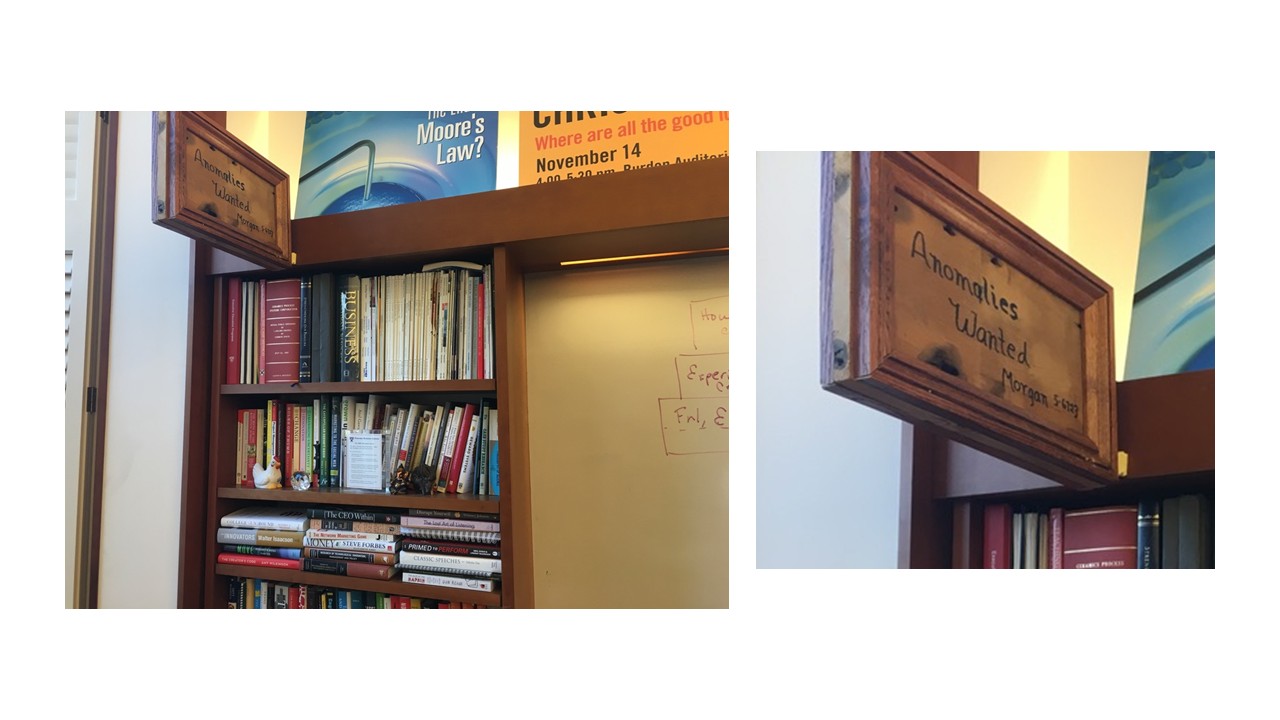 And so we have this hodge-podged sign that he made because he wanted to proclaim to everybody that walked into his office or into his world to have conversations with him that anomalies were wanted.