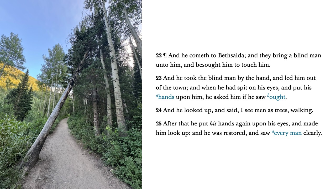 I have pondered these verses so many times and realized how much I fall in the same spot as this blind man—who when Christ does something bizarre, he takes me by the hand, leads me out of town, and then does something illogical to help me see clearly.