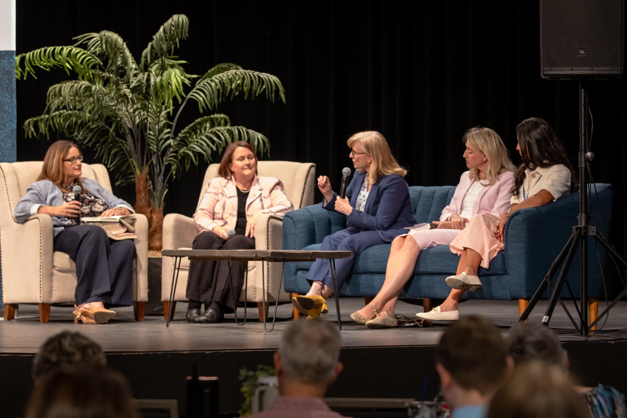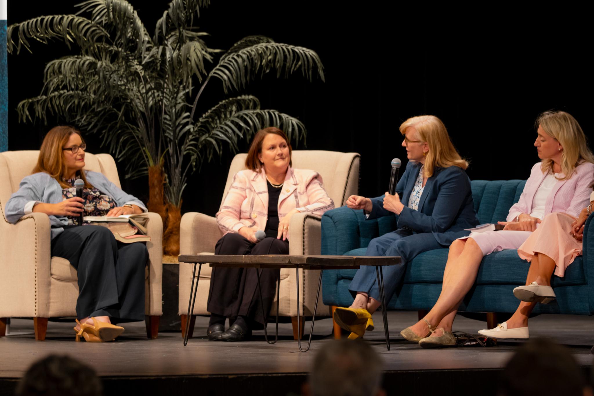 With all of this said, because we’re talking about experiences of Latter-day Saint women, I would like to invite a panel of four individuals to come and join me here on the couch. I’ve talked about women in the historical past, some in the more recent future, but I want you to see some of these incredible women who are alive and kicking today.