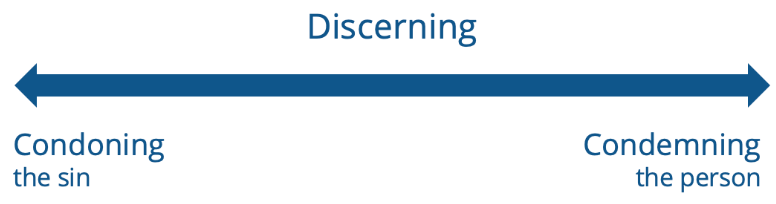 Our critics often frame our disagreements as matters of love: they are simply more loving towards those who sin. But love has almost nothing to do with this chart we see here. I think we sometimes mistake our rational assent towards Church teachings for conviction, and our heart-warm in response to choices that violate our convictions for love. We sometimes come to believe that, because we don’t feel any sense of disquiet or discomfort with the idea of same-sex activity, abortion, extra-marital sex, Sabbath-breaking or a host of other sins, we are simply more loving towards those who do these things. And that those who do feel disquiet or discomfort are not loving. For example, if someone’s scruples do not allow them to congratulate their friends for their extra-marital sexual adventures, we often treat this as a lapse in love.