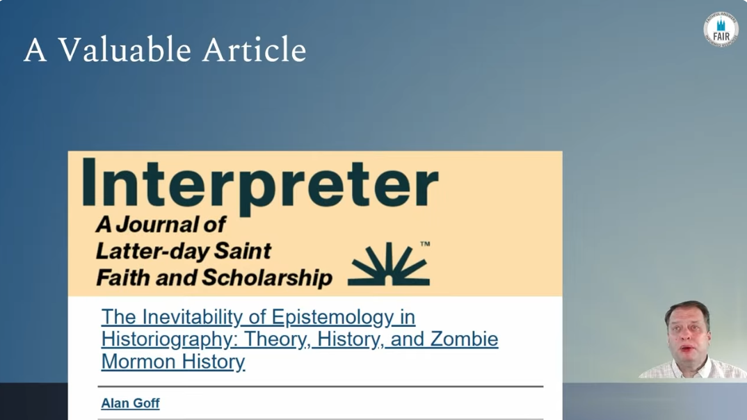 Years ago, Alan Goff published a fantastic article in the Interpreter Journal where he referred to “zombie Mormon history.” The basic idea is that when historiography does not account for a historian’s personal factors and does not explore the impact of personal intellectual biases, the historian is operating without the kind of self-awareness that is a prerequisite for any claim to objectivity. Without some training in philosophy, scholars end up with this problem of operating like zombies, following intellectual impulses that they never honestly examine.