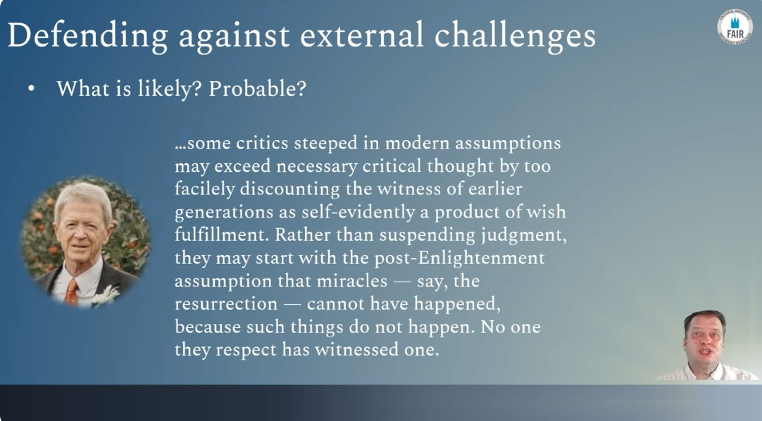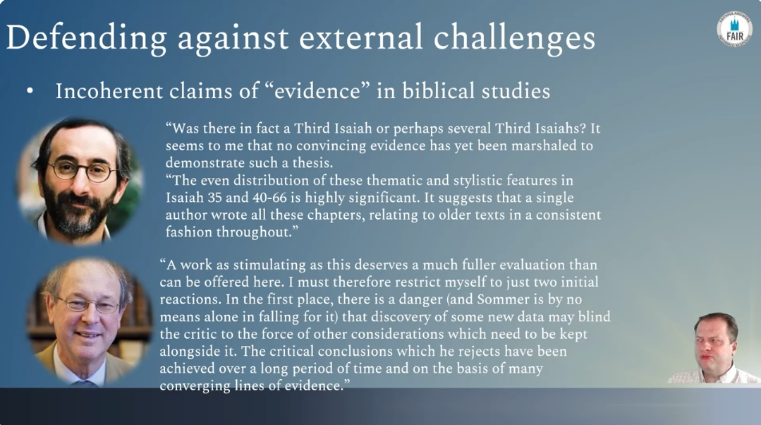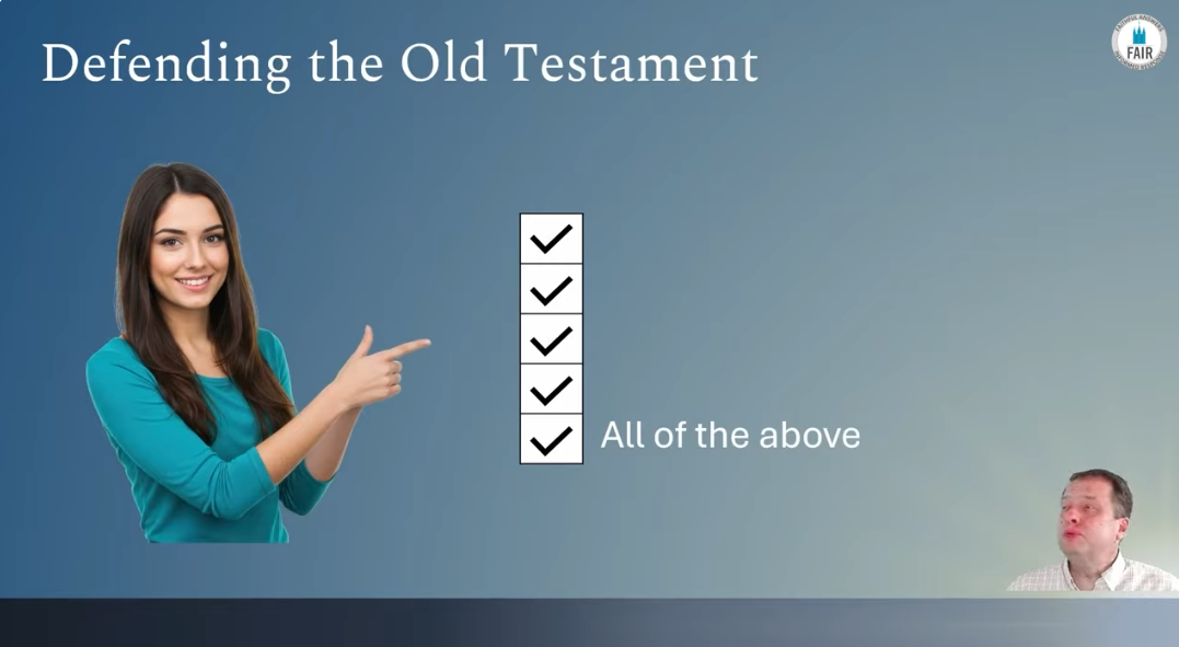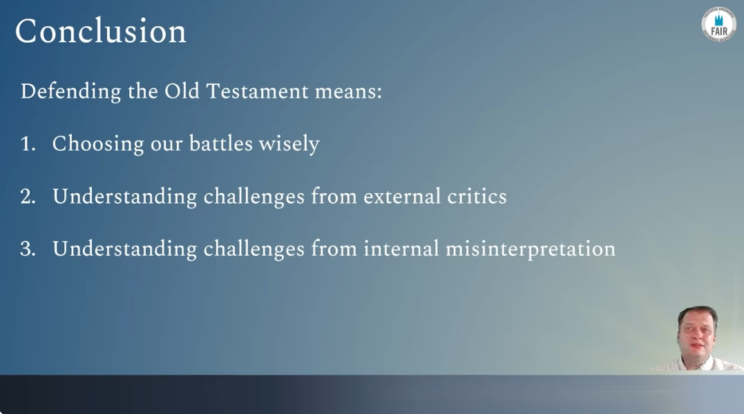 In conclusion, it is my hope that this presentation can help Latter-day Saints to critically think through our defenses of the Old Testament. Specifically, what aspects of the Old Testament we ought to defend and the nature of the attacks that believers are likely to encounter in our day.