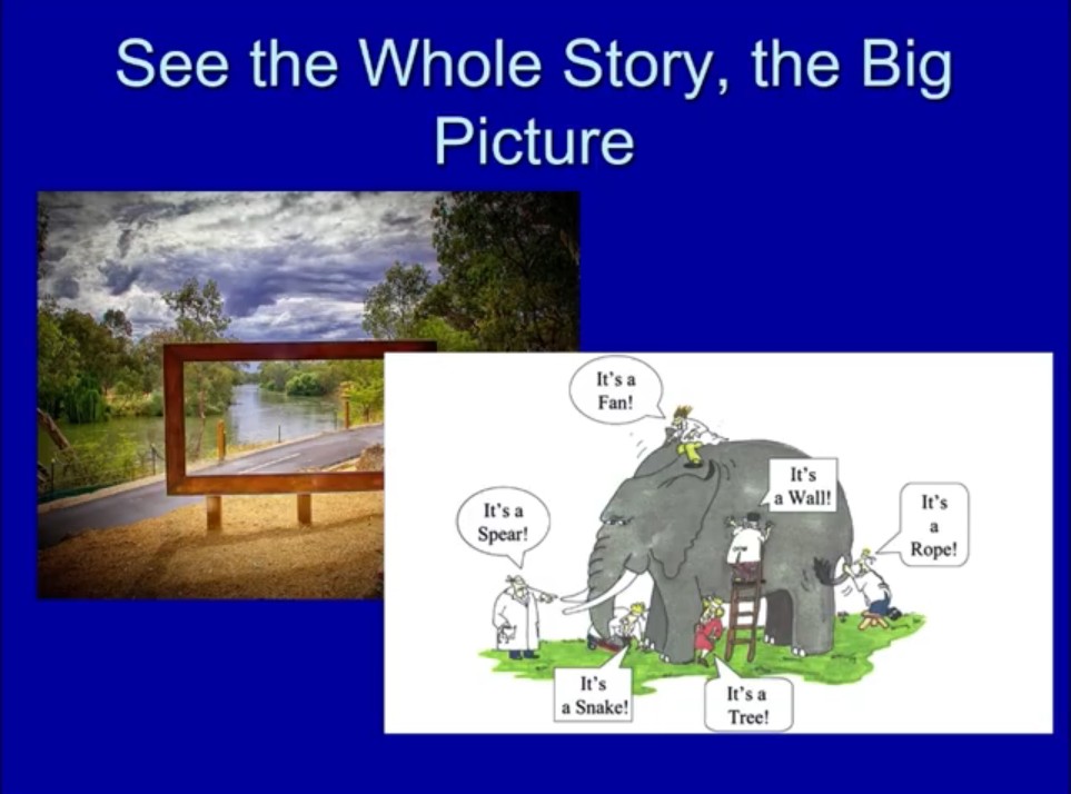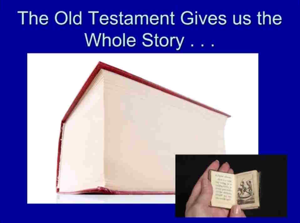 I also want to emphasize that the Old Testament gives us the whole story. That’s something — instead of the little teeny story that you can see in the lower picture — it gives us the big whole story.