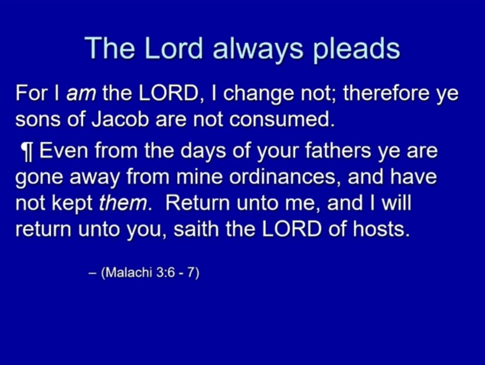 - When he says, “Come return to me” or “return to the covenant” — obviously covenant.