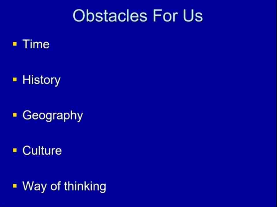 The obvious one is time. There is a tremendous amount of time that has gone past between when the stories of the Old Testament and the writings of the Old Testament happened and our day. That means that we know less than we would like about some of the peripheral information that helps us understand it.