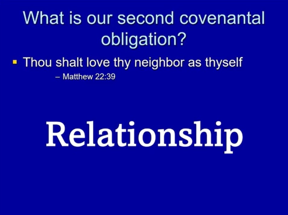 - When he talks about conquering others or being protected from others conquering us — that’s covenant.
