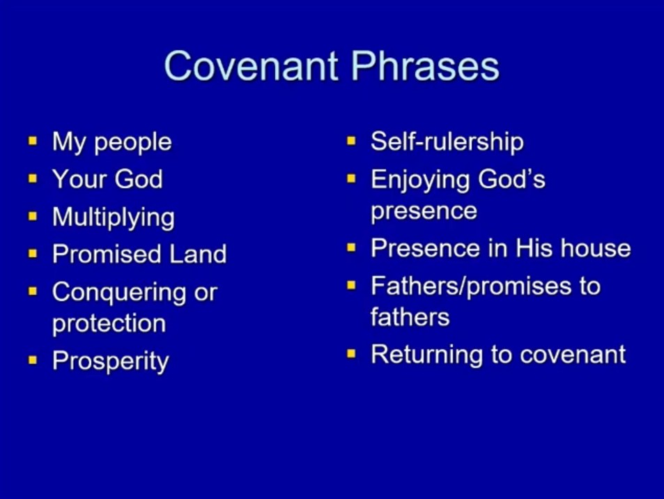 All right? I also want you to look for covenant phrases. This is really important and these will stem from those blessings we talked about. If you can find phrases that bring up what the blessings he’s talking about, you’ll recognize he’s talking about the covenant.