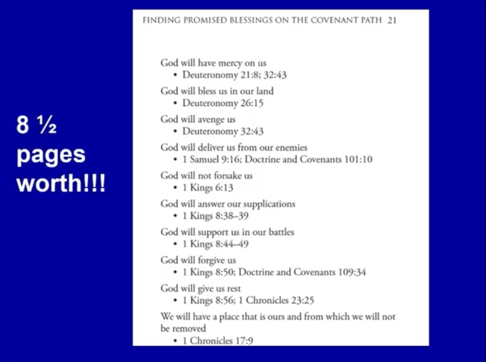 Eight and a half pages of promised blessings using the phrase my people — so that you start to recognize he’s talking about covenant blessings.