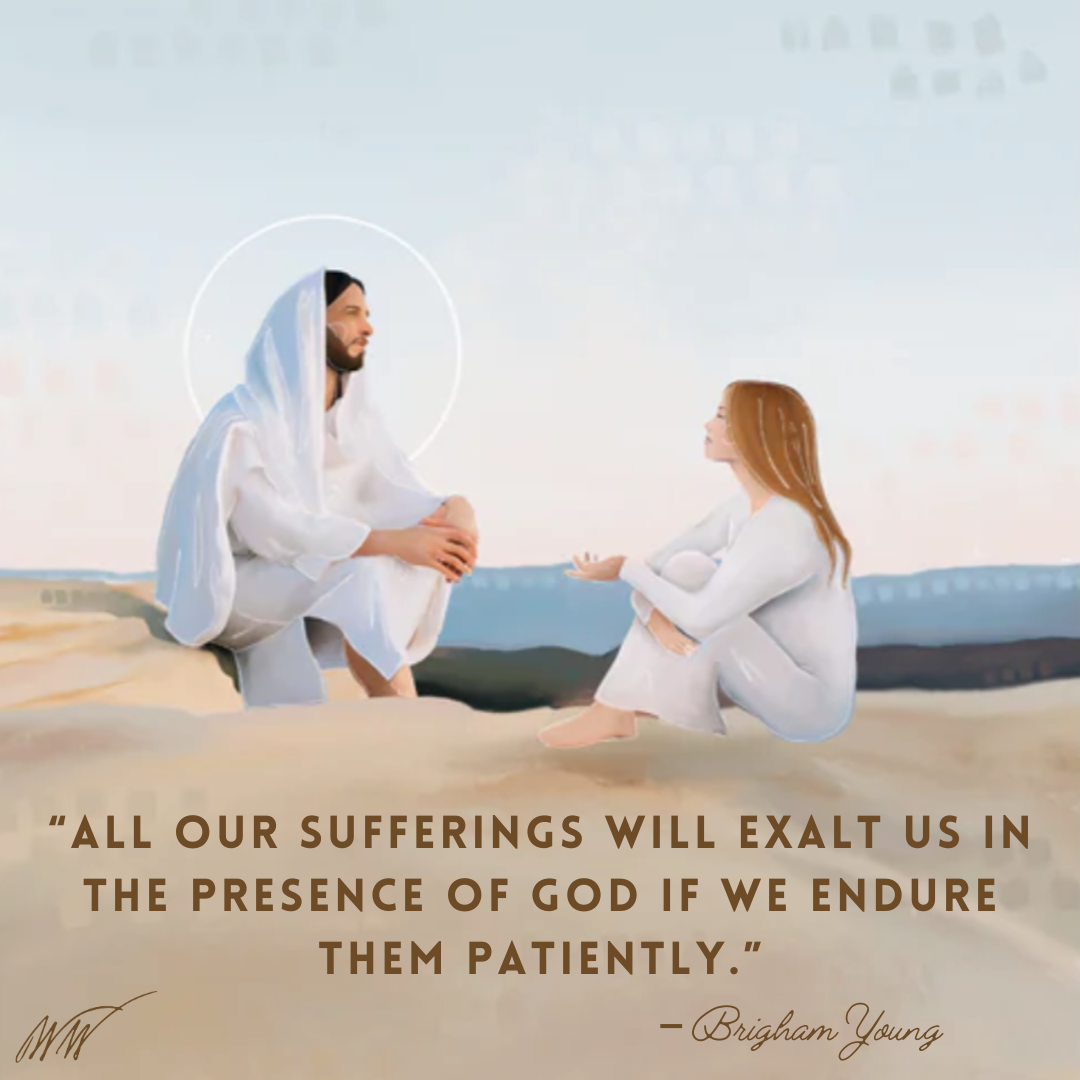 During a Sunday service in the summer of 1851, Wilford Woodruff recorded in his journal the truths that President Brigham Young taught concerning this aspect of the gospel of Jesus Christ. Speaking of the character of our Heavenly Father and His Son Jesus Christ, Brigham Young taught that through them, “all our sufferings will us in the presence of God if we endure them patiently.”2