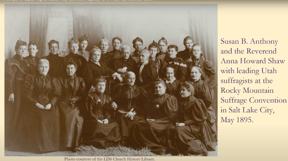 Latter-day Saints suffragists often evangelized their suffrage rhetoric. Consider, for example, this statement by Sanpete County’s suffrage association president in 1895, arguing for the continuation of suffrage associations even after they successfully regained their rights in the new state constitution. She declared, “We who have accepted the new gospel of equal rights must labor with untiring zeal for the redemption of the masses.” So, you hear that kind of missionary theme going through the way that they saw their work.