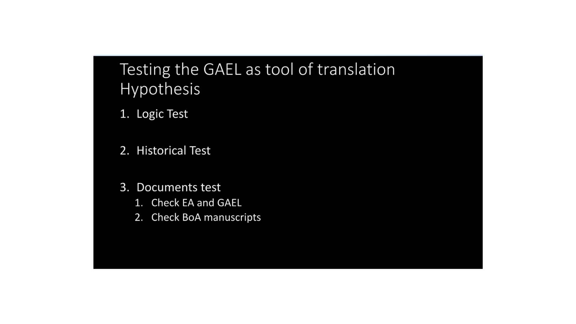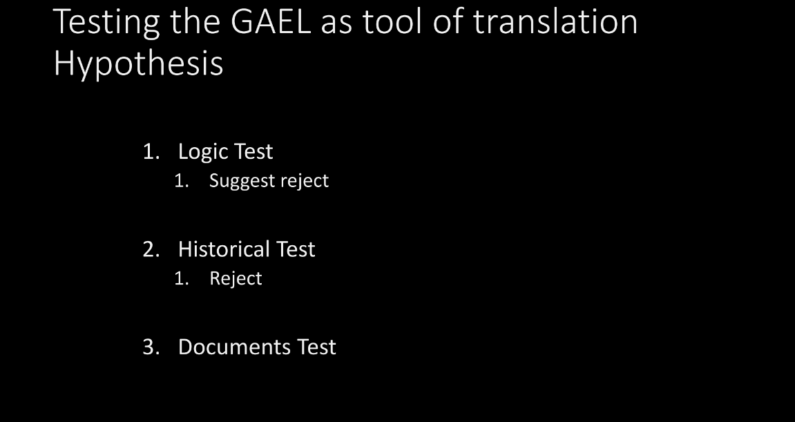So, let’s turn this assumption into a hypothesis. If we’re going to turn it into a hypothesis, that means we have to test it. We recognize it, we state it, and we test it. That’s what will make it a hypothesis. So, we’re going to use this, the grammar and alphabet of the Egyptian language or GAEL as a Tool of Translation Hypothesis. We’ll test this. There are a couple of ways we can test this.