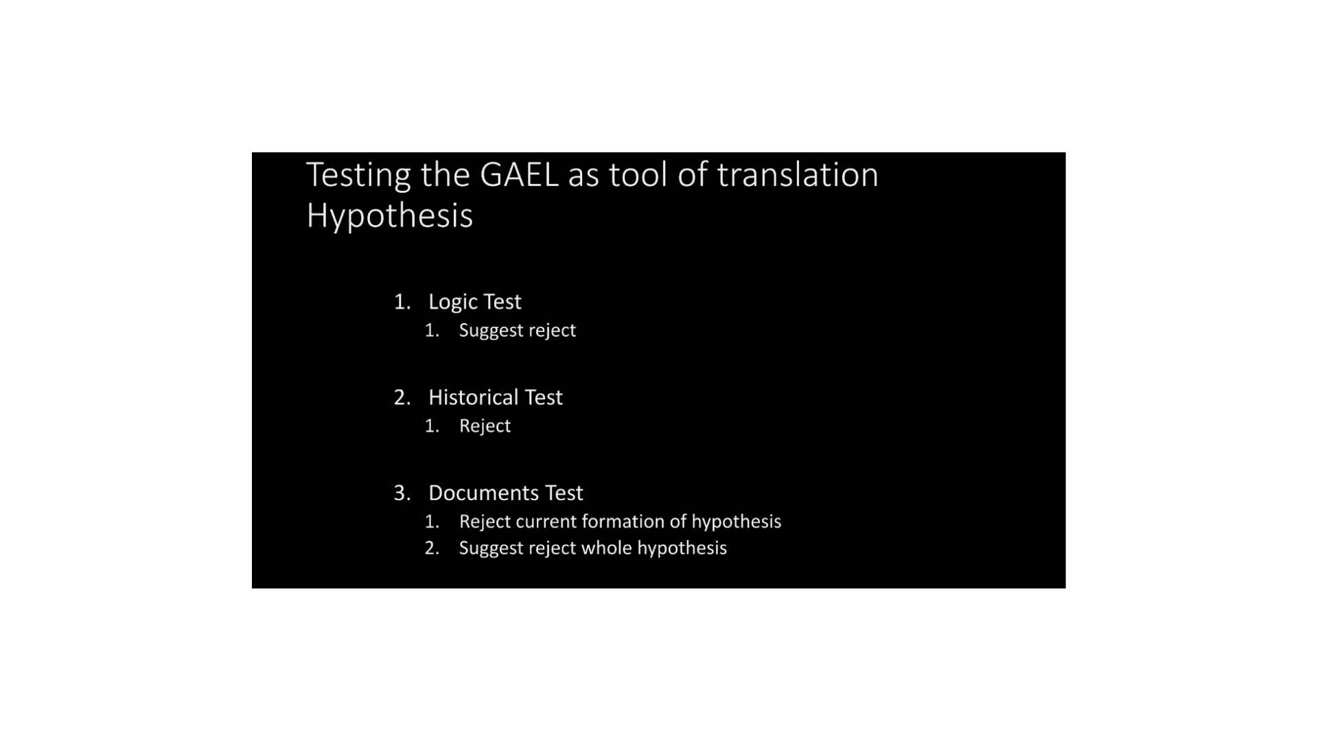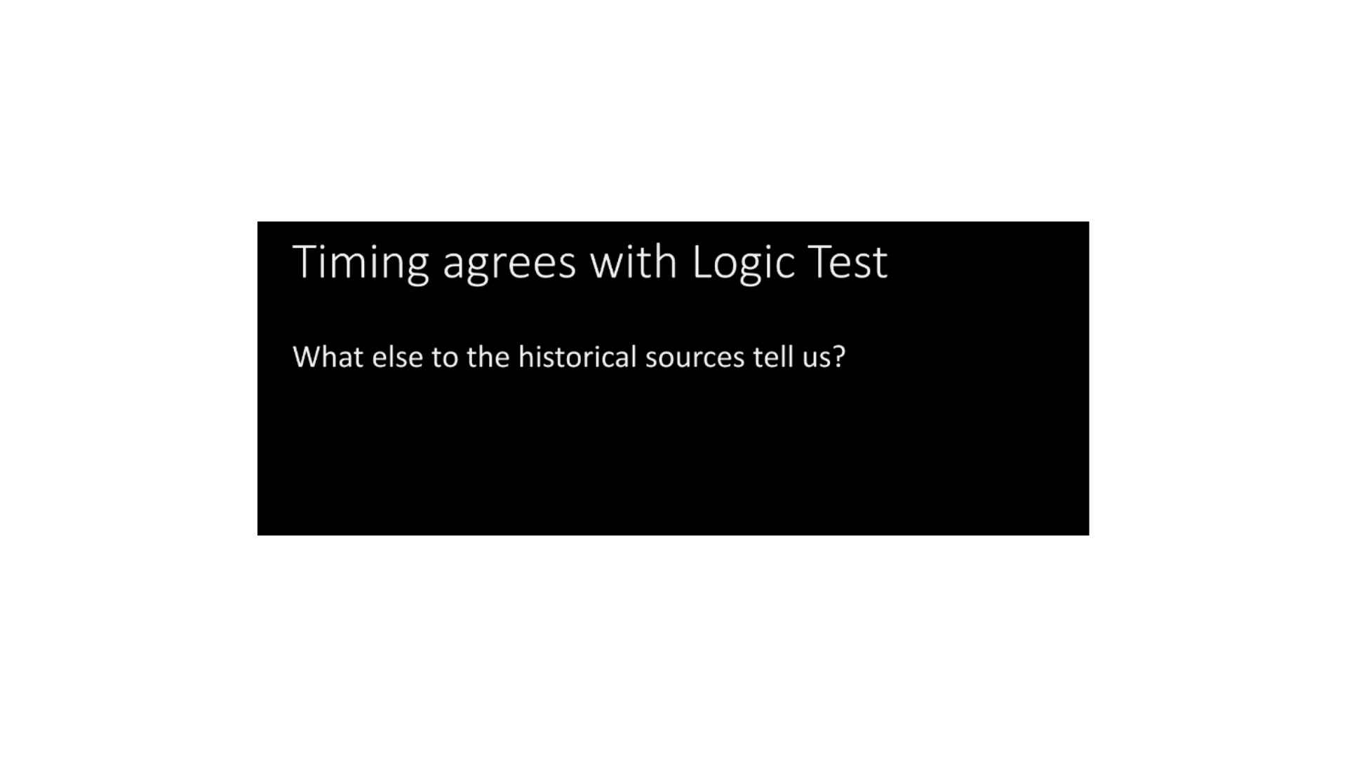 So to summarize with the logic test, we reject that the grammar and alphabet was used as a tool of translation. With the historical test, well, we suggest we reject it. It’s not a strong rejection. The historical test, it’s a strong rejection. With the document test, at least the way it’s most often formulated, we have to reject it, which suggests again, we reject the whole hypothesis.