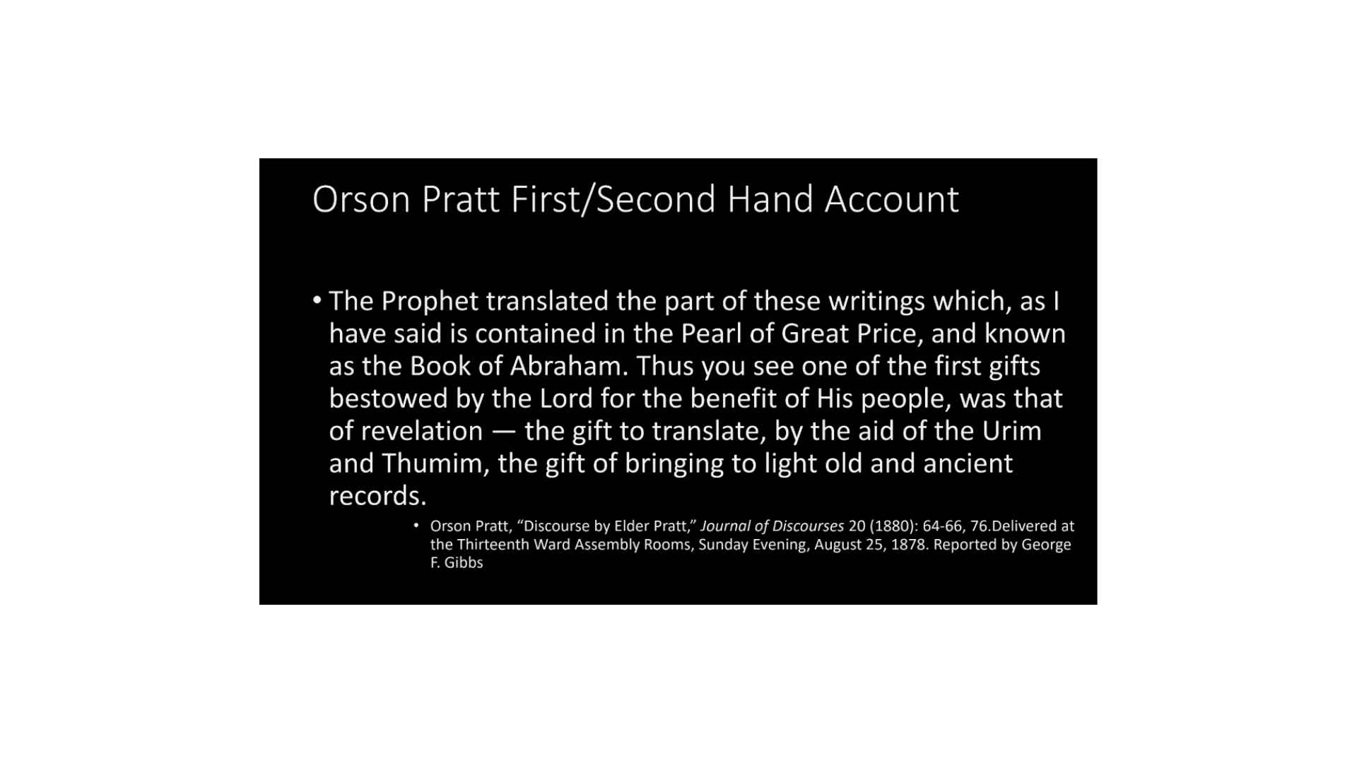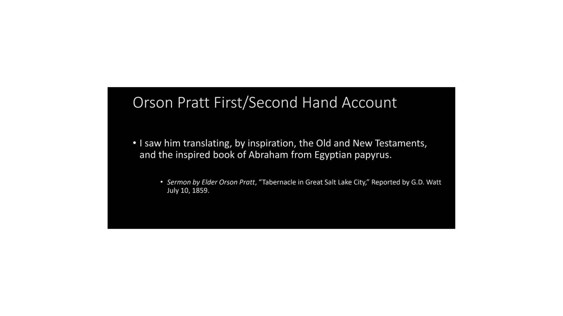 Orson Pratt is a second-hand account of the first day. He wasn’t there on that first day but he is a firsthand account of some of the time of translation. And this is what Orson Pratt says,