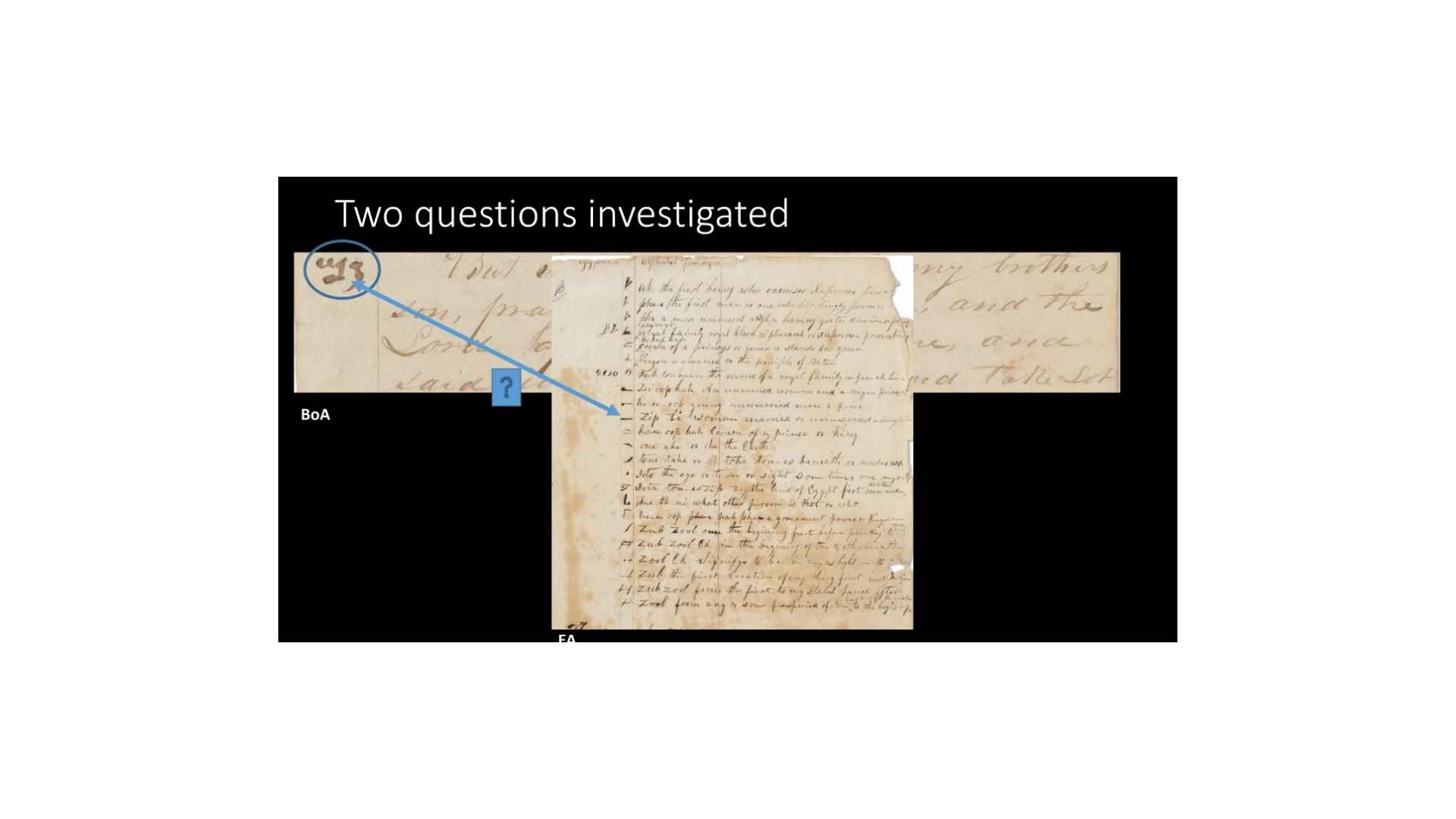 So, the first thing we get are mentions of translations, and later, a mention of an alphabet and grammar. That exactly fits with the logic test, right? Because logic is, you have a translation, and then you use that translation to try and create a grammar. So, so far, the historical text matches with the logic text. But we have a lot more in the historical record.