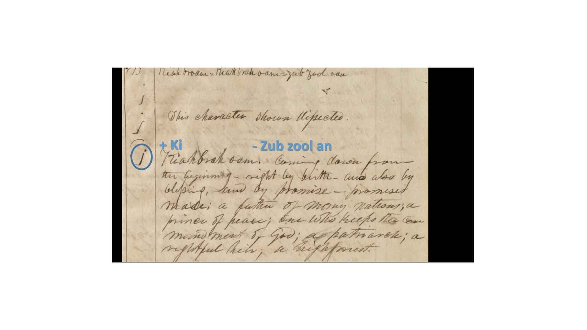 This one’s actually quite complicated, and I’ll try to show you why. So we have there the grammar and alphabet character, and I’m showing you the actual writings in the and the typescript of it, so that you can read it a little bit more easily, typed up there.