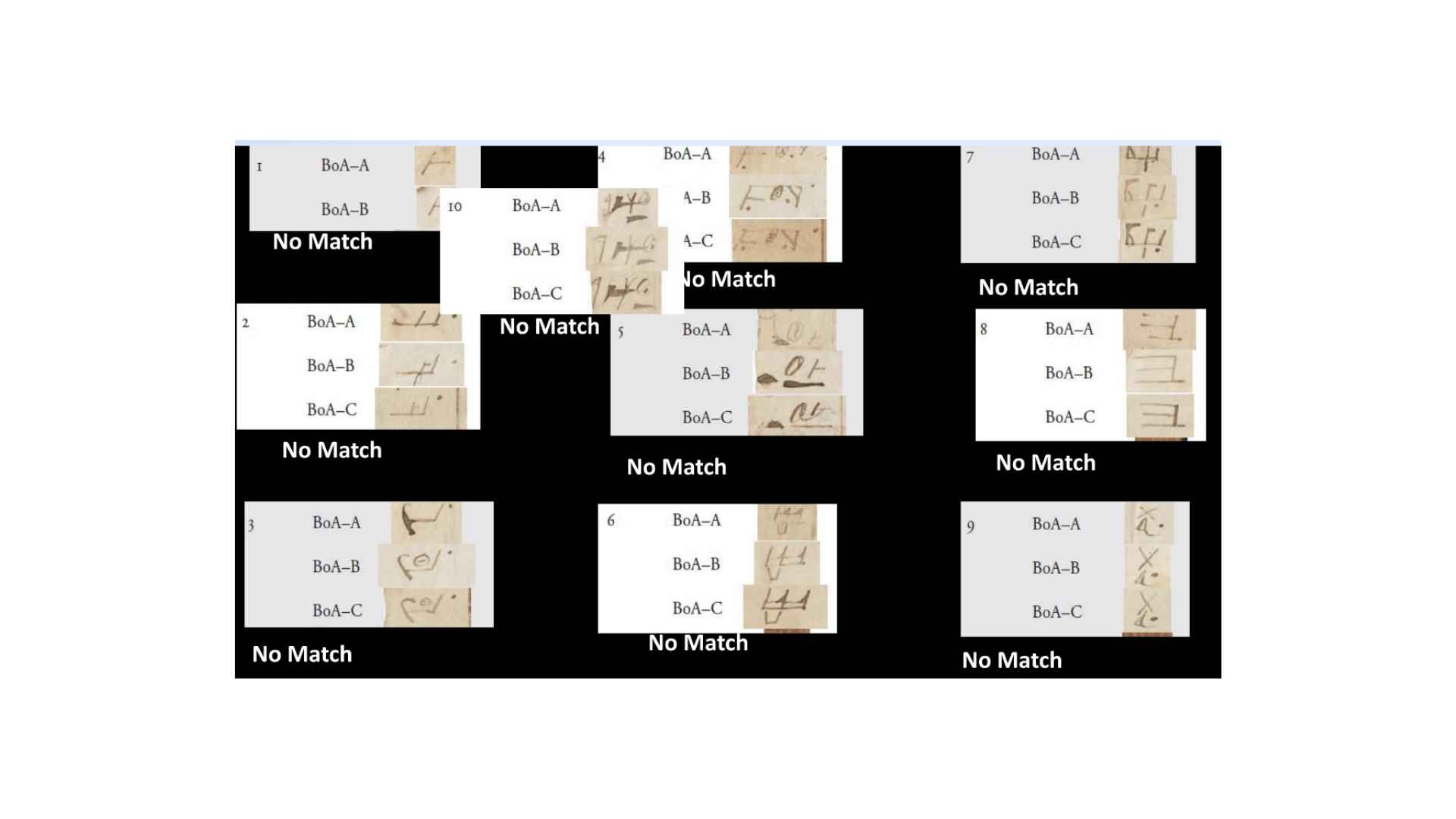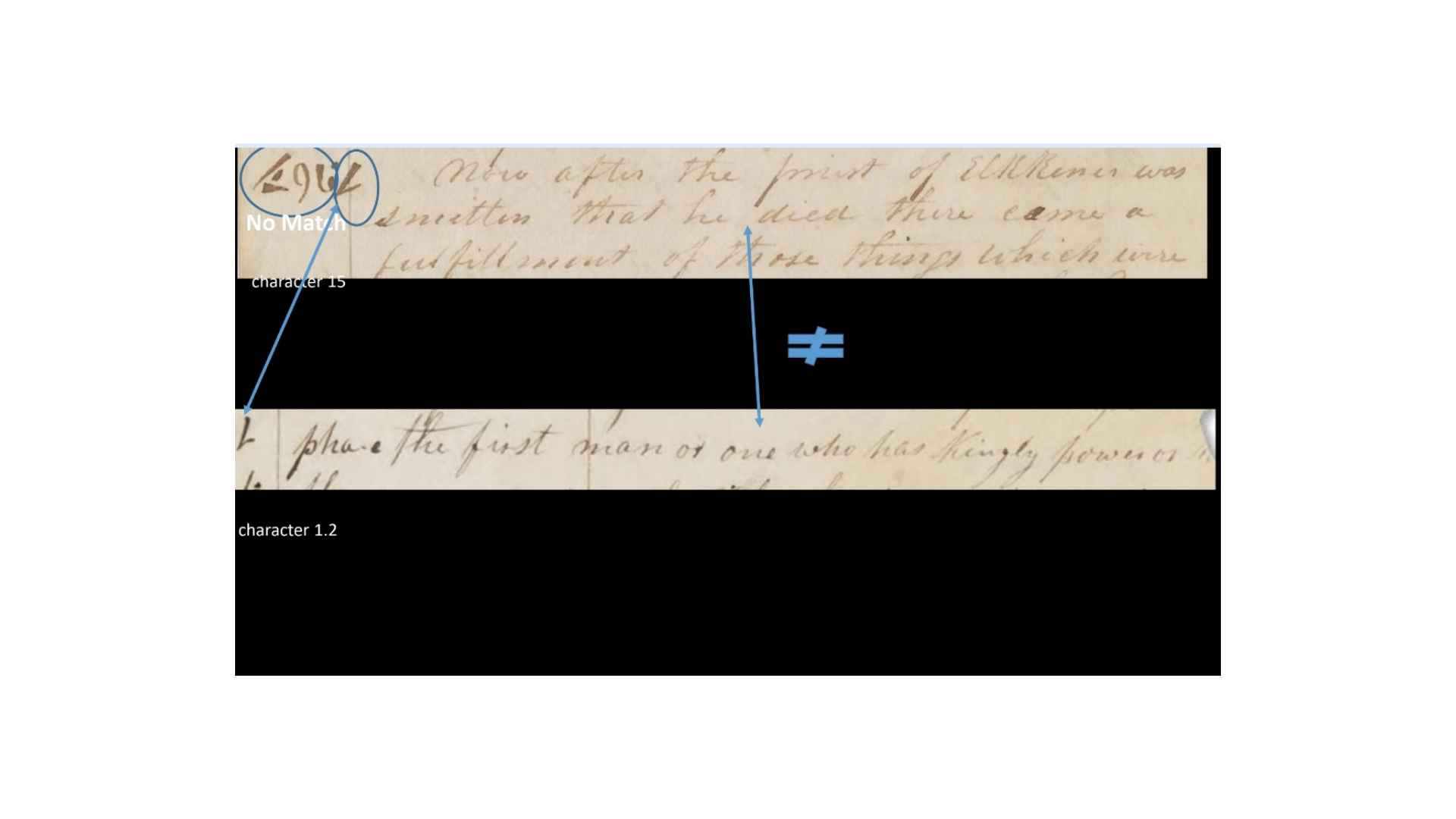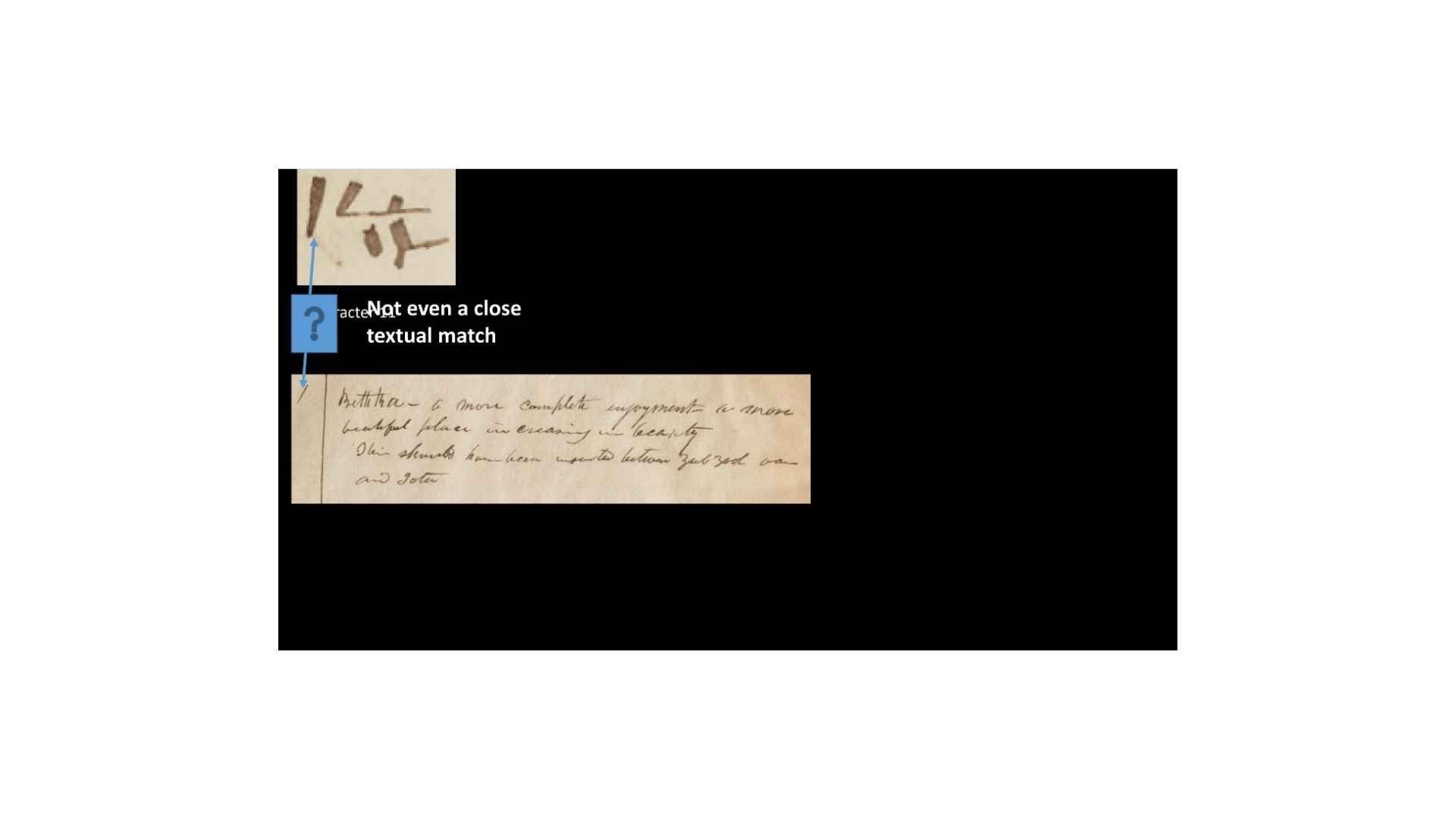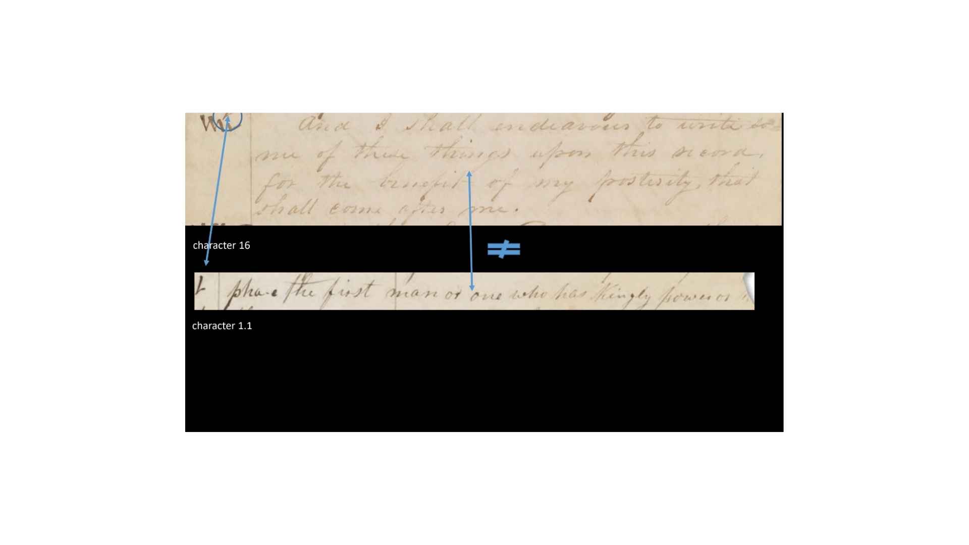 So, you can see, in this case, that the text, it’s not a perfect match, but it’s a rough match. It’s a translatable match. So, when they match, do the characters match? So, you can see what we’re doing. If the grammar and alphabet is being used to translate the characters and the margins, then we should find some match between those, right?